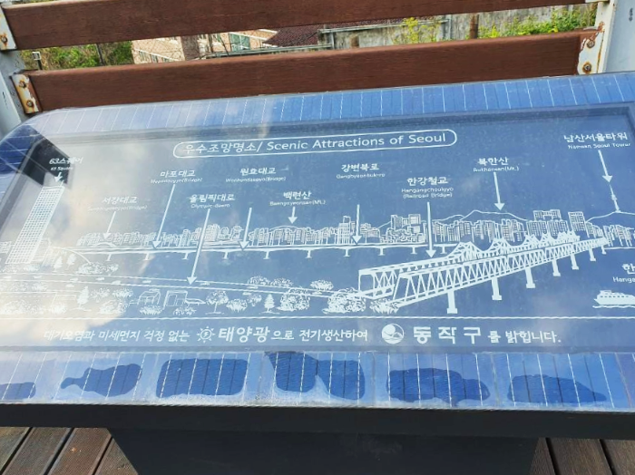 우수조망명소입니다. 서울의 랜드마크인 63빌딩과 한강이 눈앞에 펼쳐집니다. 63빌딩은 1985년에 완공된 오래된 빌딩이면서도 황금빛 외관은 볼 때마다 멋있는 것 같습니다. 퇴근길 해질녘 63빌딩 뒤로 해가 넘어가는 일몰은 그림입니다. 사육신공원의 이곳은 불꽃축제명당으로도 유명한데요. 불꽃축제 당일 자리잡기 위해서 새벽부터 치열하다고 합니다.