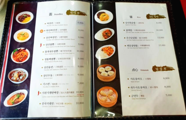 메뉴판을 보니 가격이 인근 다른 집에 비해 1천원씩은 비싼 편인 것 같았습니다. 연경은 하얀짜장면과 멘보샤가 유명하다고 들었지만 같이 간 친구가 좋아하는 삼선짜장면 그리고 삼선짬뽕으로 궁합을 맞춰서 주문하였습니다.