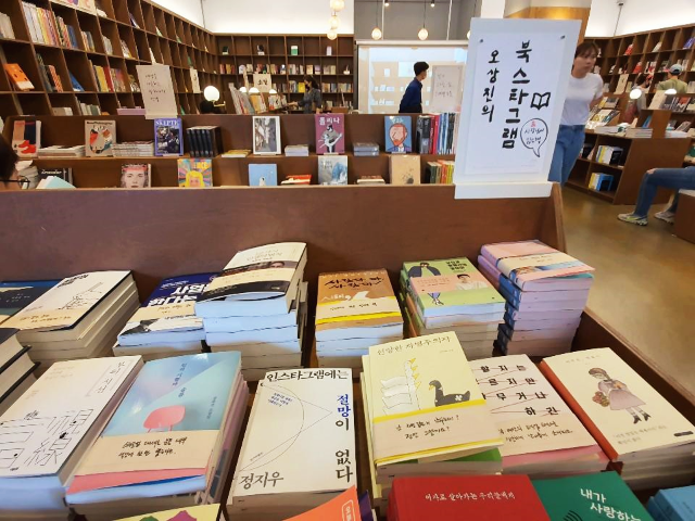 한쪽 코너에 있는 오상진의 북스타그램 입니다. 책마다 간단한 코멘트가 적혀있어서 어떤 책인지 쉽게 알 수 있게 해주는 것 같아 보였습니다.
