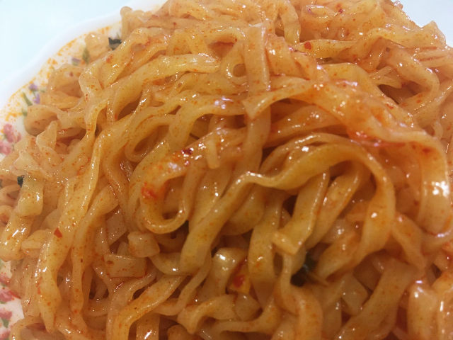 칼국수 면발로 비빔라면에서 가장 굵은 면발인 것 같습니다. 쫄면 이상의 굵기 면발은 호불호가 갈릴 것 같습니다.