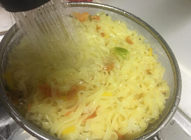 냉수로 헹굴 때 후레이크가 나가지 않도록 조심해야 합니다.