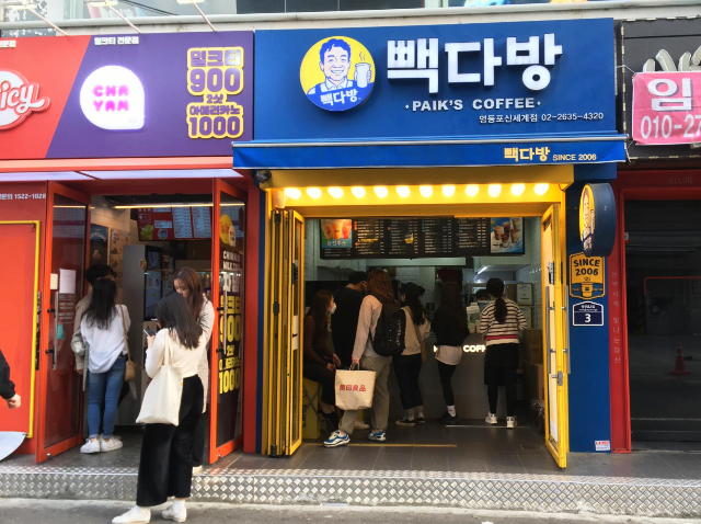 빽다방 영등포신세계점입니다. 매장도 작고 유동인구가 많은 곳이라 사람이 항상 많습니다.
