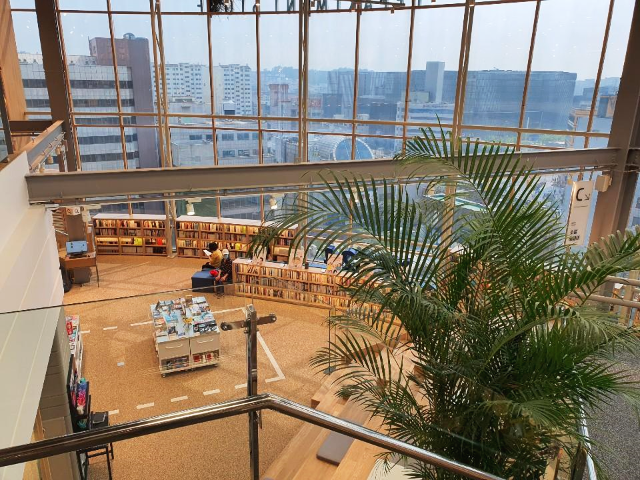 그래도 일반 서점의 답답함과 달리 통유리창과 높은 층고는 시원하고 쾌적한 게 괜찮았습니다.