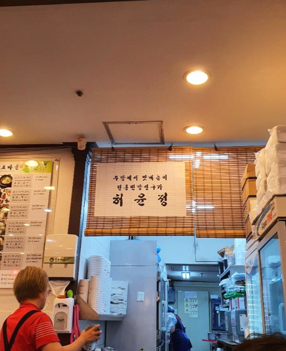 주방 입구에는 약초마을 본점다운 자신감으로 이름을 내걸고 있었습니다. 주방에서 맛내는이 전통민방연구가 허윤정. 사장님이시면서 주방장이신가 봅니다.