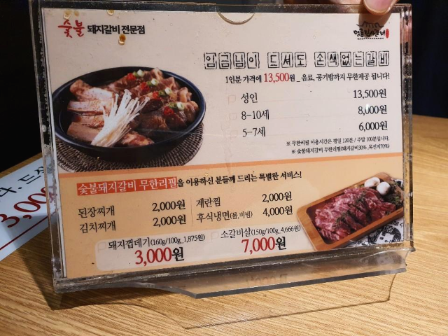 원산지는 미국산 고기를 사용하고 있었는데요. 명륜진사갈비 무한리필 고기는 갈비가 아니라는 이슈가 있었어서 원산지 표시와 함께 목전지 사용한다는 설명을 고지해두고 있었습니다.