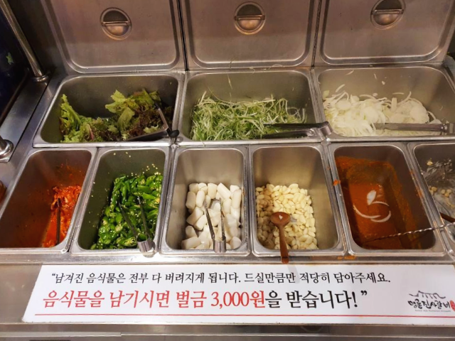 기본 반찬은 셀프바로 마련되어 있어서 마음껏 가져다 먹을 수 있습니다.
