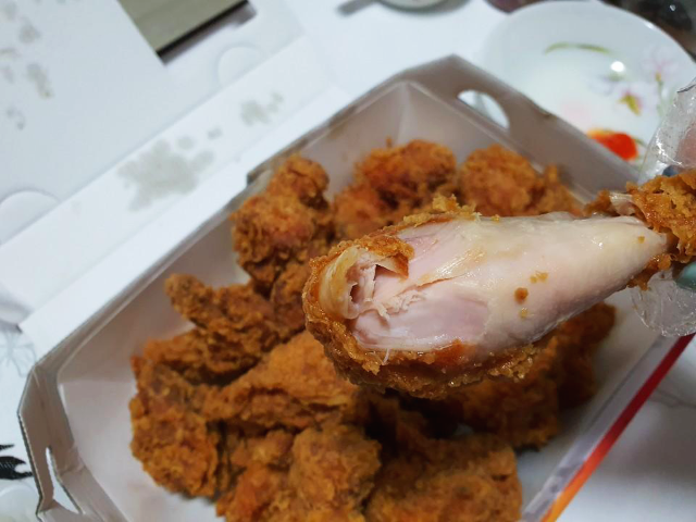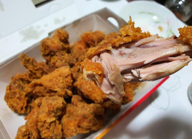 상자에는 작은 구멍을 만들어서 열어놓았는데요. 뜨거운 치킨 열로 인해서 상자 안이 습해져 치킨이 눅눅해지는 것을 방지하기 위한 것 같습니다. 치킨이 잘 있는지 확인하기도 하구요.