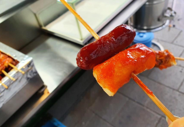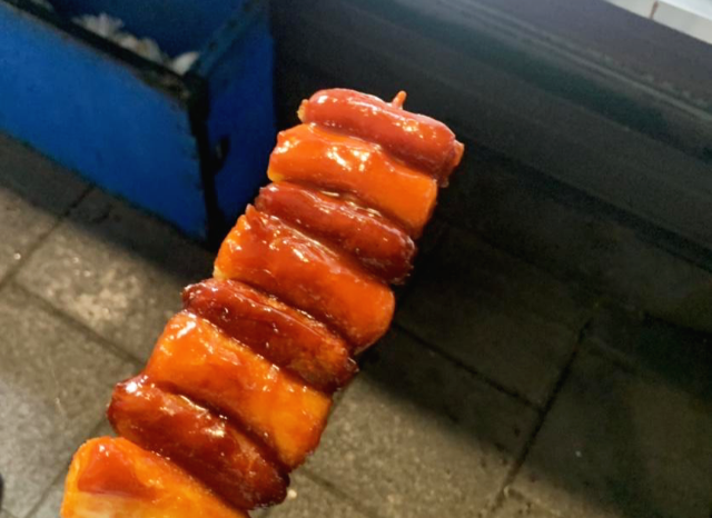 김말이꼬치입니다. 순대꼬치와 생긴 게 비슷해서 처음 먹었을 때 순대꼬치를 먹은 적이 있습니다. 순대꼬치도 맛있어서 두 개 다 먹었습니다.