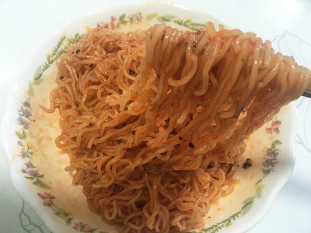 오뚜기 메밀 비빔면이 완성되었습니다. 메밀 비빔면인데 다른 비빔면들과 별다른 차이는 없어 보입니다. 매콤새콤한 비빔면 맛입니다. 양념맛은 다른 비빔면들과 거의 같습니다. 양념맛으로 구별하기는 힘들정도로 같은 맛입니다.