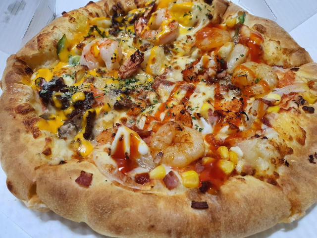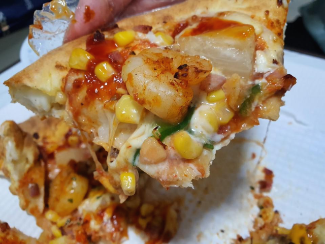 시리얼 칠리크랩입니다. 여기도 가운데 새우가 딱~! 새우와 게살은 역시 환상 궁합입니다. 매운맛이 거의 없는 칠리소스가 풍미를 더 살려주고 클래식피자 맛에 가까운 가벼운 맛이 느껴졌습니다.