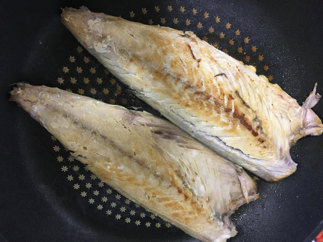 고등어는 기름기가 많은 생선으로 따로 식용유를 두를 필요가 없습니다. 고등어 자체에서 기름이 나와 후라이팬이 타지 않고 적당한 기름에 담백한 고등어로 구울 수 있습니다.