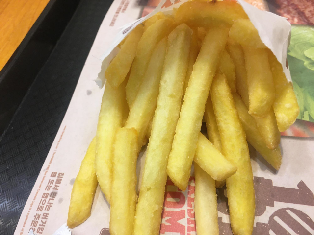 버거킹에 오랜만에와서 정말 놀란 것은 감자튀김입니다. 주로 맥도날드 감자튀김을 먹다가보니 버거킹의 감자튀김이 굉장히 깨끗해 보입니다.