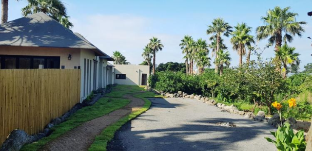 입구부터 길게 뻗은 야자수나무가 이국적인 모습입니다. 제주 코사무이 풀빌라 펜션은 villa1, villa2, villa3으로 3곳의 단독 룸으로 되어 있는데요. 제가 선택한 곳은 villa3으로 3곳 중 제일 큰 기준 4인 (4-8인)입니다. 저의 가장 친한친구인 아내와 둘이 왔는데 예약할 때 가능한 룸이 villa3 뿐이어서 어쩔 수 없이 선택하게 되었습니다.