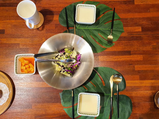 다음날 조식을 먹었습니다. (조식은 무료로 제공됩니다) 조식은 8시-9시 사이에 준비해주십니다. 카페식당으로 가시면 먹을 수 있습니다.