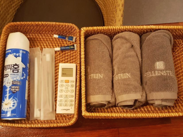 수건도 넉넉히 있고 수건과 휴지 등 모자란 물건이 있으면 입구 쪽 카페식당이 24시간 불을 밝히고 있어서 언제든 가져올 수 있습니다.