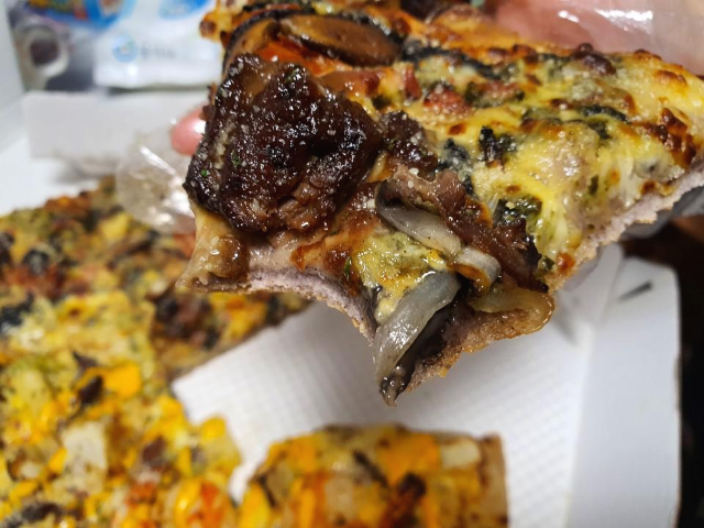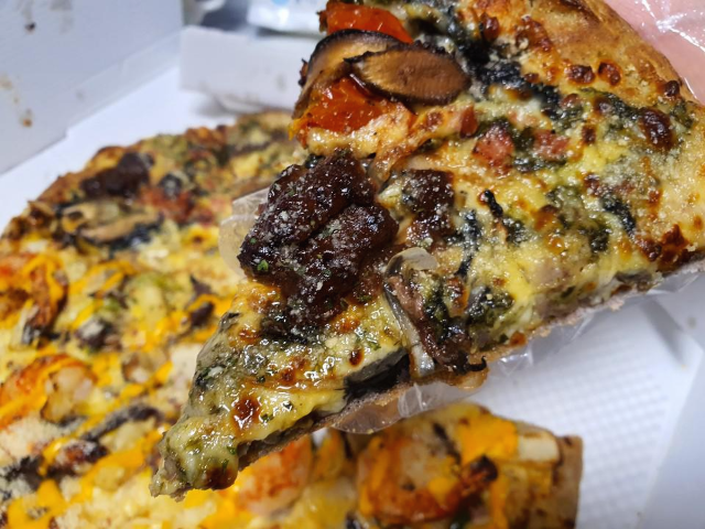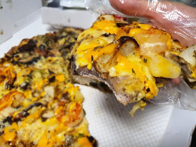 블랙타이거 슈림프입니다. 탱글탱글한 새우와 쫄깃쫄깃한 불고기가 매력적인 피자입니다. 새콤달콤 파인애플과 치즈의 풍미가 조화롭게 어우러져서 맛있었습니다.