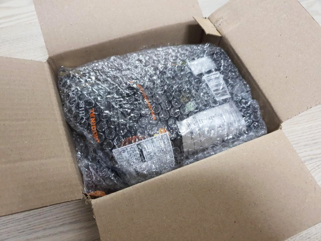 택배가 도착하였습니다. 과자 한 봉지가 소중히 담겨있습니다.
