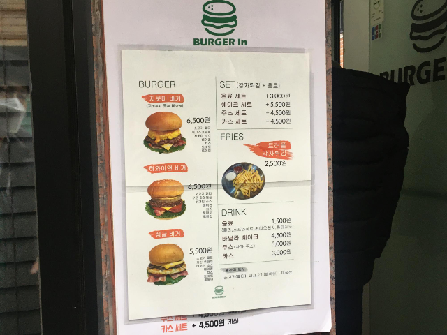 대기하는 동안에 메뉴판을 보았습니다. 이곳의 시그니처 메뉴인 지못미 버거가 있었는데요. 지켜주지 못해 미안해? 뭘 지켜주지 못하고 미안해하는 건지 몰랐습니다. 이야기를 들어보니 햄버거 먹을 때 먹기 버거워서 체면을 못 지켜준다고 해서 백종원씨가 붙여준 이름이 지못미 버거라고 합니다. 지못미버거와 음료세트(감자튀김+음료)로 주문해보았습니다.