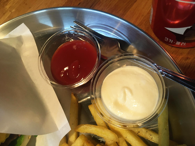 지금껏 수제햄버거를 많이 먹어보진 않았지만 먹어본 수제햄버거 중에 가장 맛있었습니다. 다른 수제햄버거는 패티에 기름이 많아서 느끼하거나 너무 타서 수제햄버거의 장점이 거의 없다고 느꼈었는데요. 버거인의 수제햄버거는 제가 좋아하는 스타일로 햄버거가 크지만 굉장히 부드럽고 재료 구성도 알차서 먹기 좋고 맛도 좋은 수제햄버거라 생각됩니다. 감자튀김에 소스도 두가지로 나오는게 하나하나 신경쓰는 모습이 좋고 맛도 괜찮았습니다. 수제햄버거 생각하면 이제 버거인이 가장 먼저 떠오를 것 같습니다.