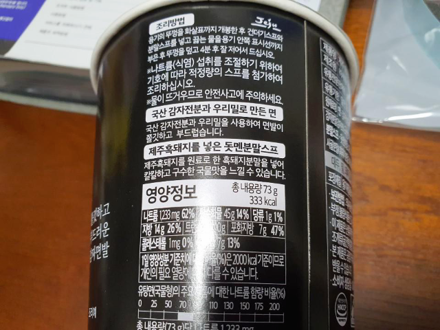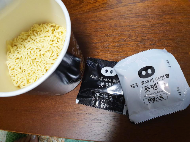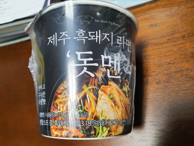 작년에 제주도 기념품 가게에 갔더니 제주흑돼지라면 돗멘이 있었습니다. 호기심에 맛이 어떨지 하나 구입해왔었는데요. 이제야 한번 먹어보았습니다.