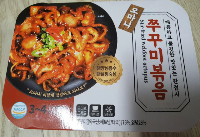 날씨가 추우니까 칼칼하고 매콤한 게 먹고 싶었는데 주꾸미 볶음이 생겼습니다. 타우린이 많아서 겨울철 피로회복에 좋다는 주꾸미입니다. 간편 요리 냉동식품인데요. 아내 분께서 공짜로 얻어오셔서 조리해보았습니다.