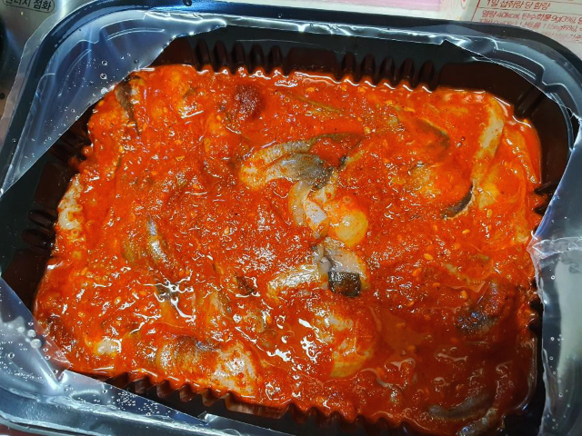 냉동상태라서 자연해동으로 조리 1~2시간 전에 꺼내놓아야 하는데요. 저는 전자렌지에 해동시켰습니다. 비닐을 뜯으니 매콤한 냄새보다 쭈꾸미 생물의 비린내가 조금 났습니다.
