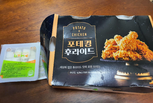 치킨 상자 뚜껑을 열고 보니.. 포테킹 후라이드가 맞나? 그냥 후라이드가 온건 아닌지 다시 한번 천천히 보았습니다.
