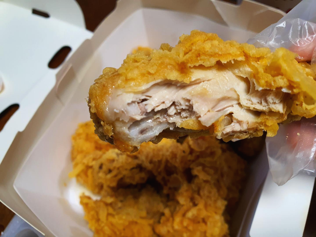음... 후라이드 치킨 맛입니다. 감자가 별로 안 붙어서인지 감자 맛은 거의 나지 않았습니다. 감자 때문에 일반 후라이드보다 조금은 바삭한 맛이 있을 수 있지만 감자 때문에 느끼함도 조금 더 생긴 것 같기도 합니다. BHC 후라이드는 먹어도 느끼하지 않게 끝까지 잘 먹었는데 이번에 주문한 BHC 포테킹 후라이드는 느끼해서 다 먹지 못했습니다. 배고픔을 달래기 위해 컵라면을 하나 먹게 되었네요. 호불호가 갈리는 맛이지 않을까 생각됩니다.