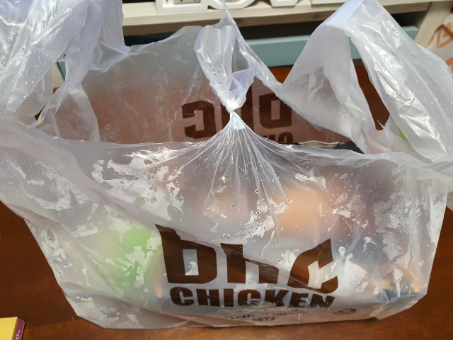 날씨가 추워서인지 뜨거운 치킨 봉지에 물기가 맺혔습니다. 집에서 가장 가까운 신풍역점에 주문하였습니다. 주말이고 BHC 신메뉴인 포테킹 후라이드가 인기인 것인지 주문하고 80분 후에나 받아볼 수 있었습니다. 기다림에 지루해하지 않고 더 배고파지면 더 맛있게 먹을 수 있겠다는 생각을 하고 있었습니다.