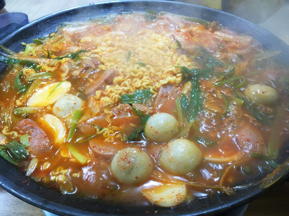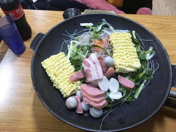 드디어 나왔습니다. 캡틴아메리카 방패만큼 강력할 것 같은 철판에 담겨 나왔습니다. 모둠사리가 포함된 것인데 보기에는 아닌듯해보였습니다. 모둠사리로 말할 것 같으면 [모둠사리=햄, 소시지, 민찌, 베이컨, 감자만두, 떡, 라면or당면] '내꺼인듯 니꺼아닌 내꺼 같은 (모둠사리)'. 모둠사리가 없었으면 양이 얼마나 들어있을지가 궁금해졌습니다. 다음엔 빼고 먹어봐야겠습니다.