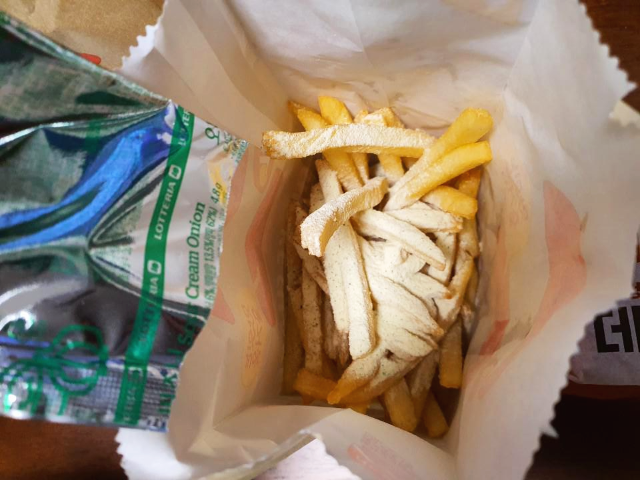아내분께서는 양념감자가 드시고 싶다며 돈 추가해서 오니언 양념감자로 꼭 변경하라고 하셨습니다. 저는 담백한 감튀를 좋아하는데 아내분은 오니언 양념감자를 좋아하십니다. 두 세트 모두 양념감자로 변경해서 추가로 1천원을 결제하였습니다.