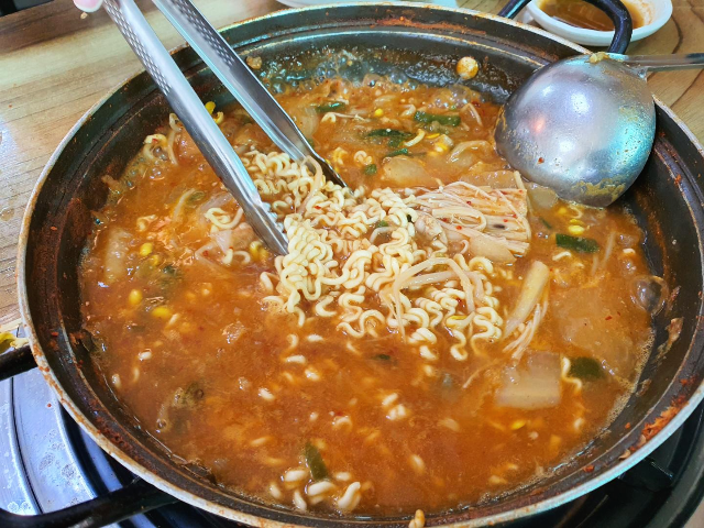 전복, 낙지, 게, 새우, 바지락, 홍합 등등 해산물을 맛있게 건져먹고 남은 국물에 라면사리로 마무리합니다.