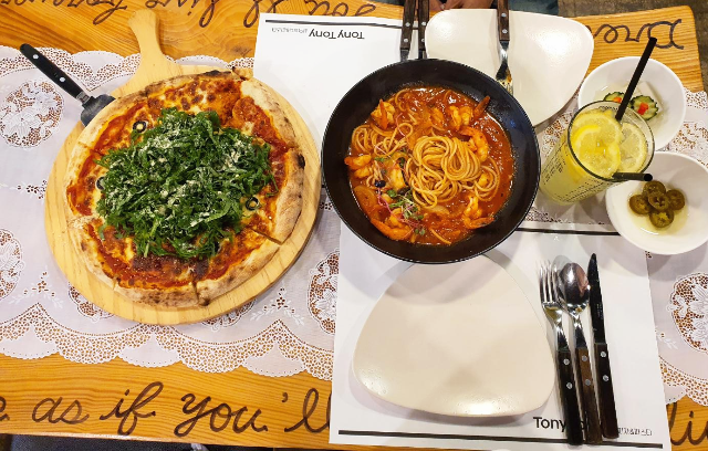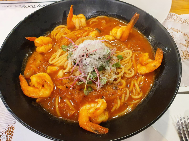 새우가 들어있고 토마토소스가 많아서 좋았습니다. 가끔 파스타 먹다보면 소스가 너무 적어서 면이 뻑뻑해질 때가 있는데 이곳 토니토니는 소스가 많아서 면을 다 먹고 빵까지 먹을 수 있을 정도로 소스 양이 많아서 좋았습니다.