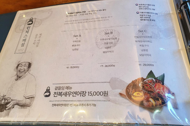 점심시간에 맞춰서 런치스페셜을 주문할 수 있었습니다. 저희는 무난하게 중간으로 가운데 Set B (전복새우우럭조림, 옥돔구이, 냥푼밥, 보말미역국) 2인으로 주문하였습니다. 그래도 1인에 24,000원으로 2인이면 거의 5만원입니다. 런치스페셜인데도 가격이 상당합니다.