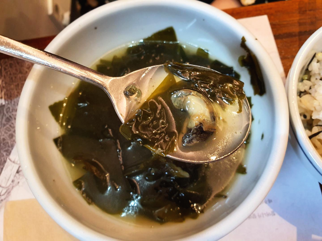 단맛을 중화시키고자 보말미역국을 떠먹으면서 먹었습니다. 몇 번 떠먹으면 없어지는 보말미역국도 맛있게 먹었습니다.