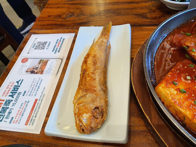 옥돔구이 먹어보았습니다. 보기와는 다르게 너무나 맛있었습니다. 이곳에서 제일 맛있게 먹은 것 같습니다. 겉은 바삭하면서 속살은 탱글탱글 쫀득쫀득 옥돔의 특유의 향과 반건조된 생선의 맛이 최고였습니다. 보기와는 다른 반전의 맛이었습니다.