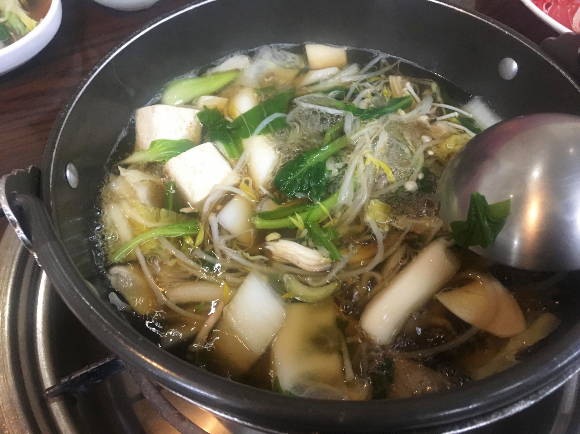 처음부터 고기를 넣어버리면 육수가 탁해지고 채소 육수를 먹지 못해서 채소만 넣고 채소 육수를 먹습니다. 그리고 고기를 조금씩 곁들이면서 먹습니다. 자주 가다 보니 저만의 방법이 생기게 되었습니다.