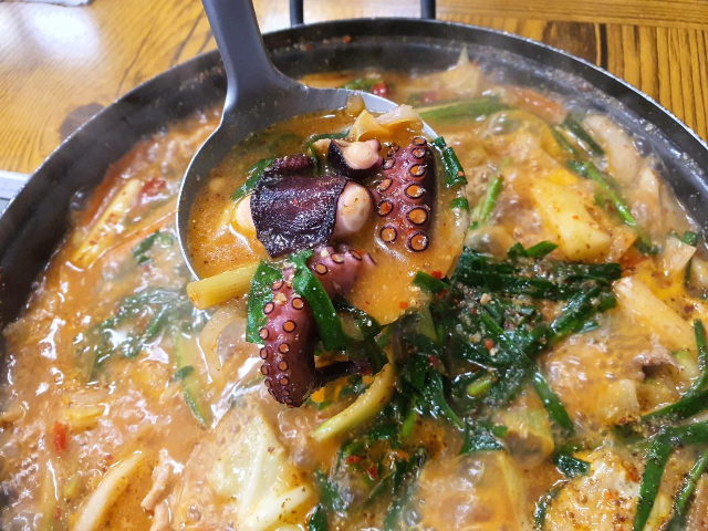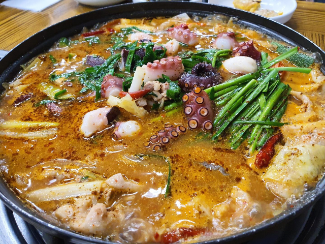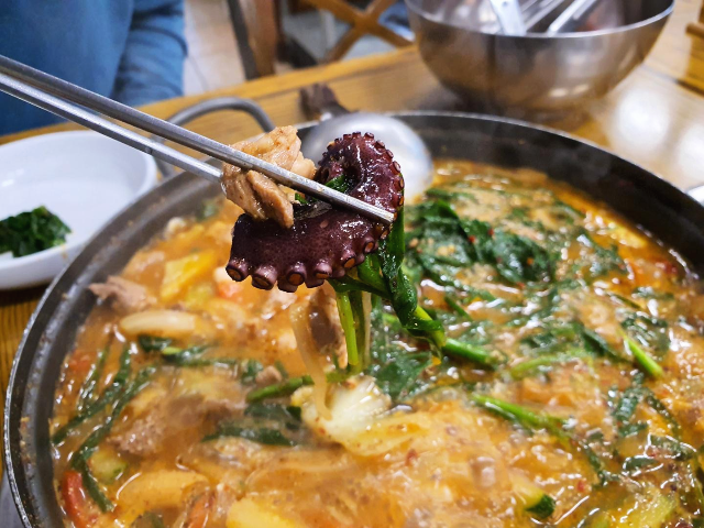 반짝 추위가 있는 요즘 칼칼한 국물과 몸보신 음식이 생각납니다. 몸보신 음식들이 많이 있는데요. 그중에 제주도에서 먹었던 특이한 음식이 있습니다. 올랭이와 물꾸럭입니다. 올랭이와 물꾸럭은 제주도 방언으로 올랭이는 오리를 뜻하고 물꾸럭은 문어를 뜻합니다. 오리고기와 문어가 같이 들어간 탕? 전골? 올랭이와 물꾸럭을 먹어보았습니다.