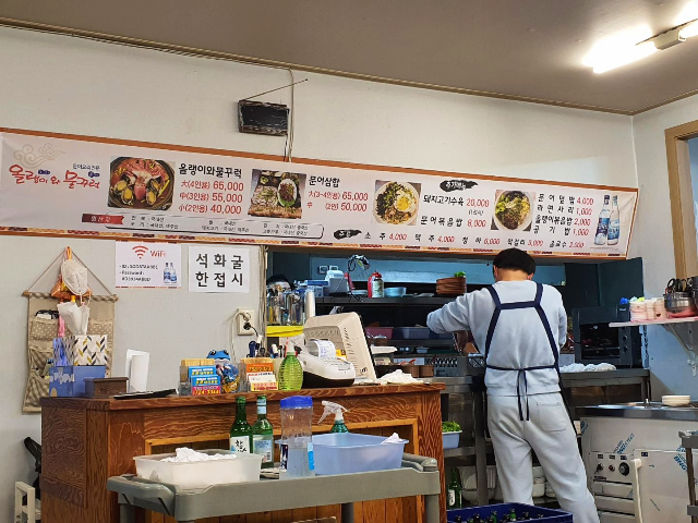이곳의 대표적인 메뉴 올랭이와 물꾸럭 말고도 문어삼합이 있었습니다. 문어삼합도 먹고 싶었지만 이번에는 올랭이와물꾸럭을 먹으러 와서 문어삼합은 다음에 먹어보기로 하고 올랭이와 물꾸럭 小(2인용)으로 주문하였습니다.