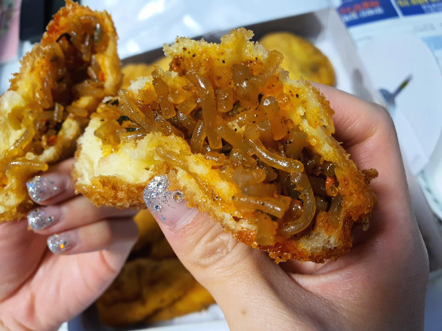 용꽈배기 시그니처인 대파꽈배기입니다. 꽈배기 안에 파가 쏙쏙 들어가 있습니다. 쫀득쫀득 부드러운 빵에 파 향의 풍미가 입안 가득히 퍼집니다. 먹어본듯한 맛이기도한데요. 야채빵 맛과 비슷하기도 합니다. 예전에 포스팅했었던 마포 대흥동 온달만두분식 꽈배기달인 꽈배기도 파향맛? 야채맛? 이 났었습니다. 용꽈배기의 대파꽈배기는 파가 들어가서 파가 씹히면 향이 더욱 진하고 맛있었습니다.