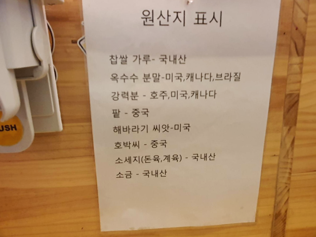 매장 내에 붙어있는 원산지도 꼼꼼히 확인합니다.