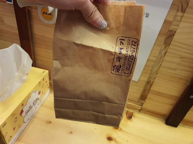 저는 1만원세트메뉴로 2박스 주문하여 꽈배기 4개를 서비스 받았습니다. 종이봉투에 넣어주셨는데 공항가는 차안에서 다 먹어버렸습니다.