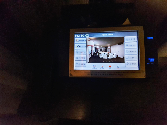 침대 옆으로는 전화 겸 컨트롤박스가 있었습니다. 조명, 커튼 등 객실 모든 것을 조절할 수 있어서 편했습니다.