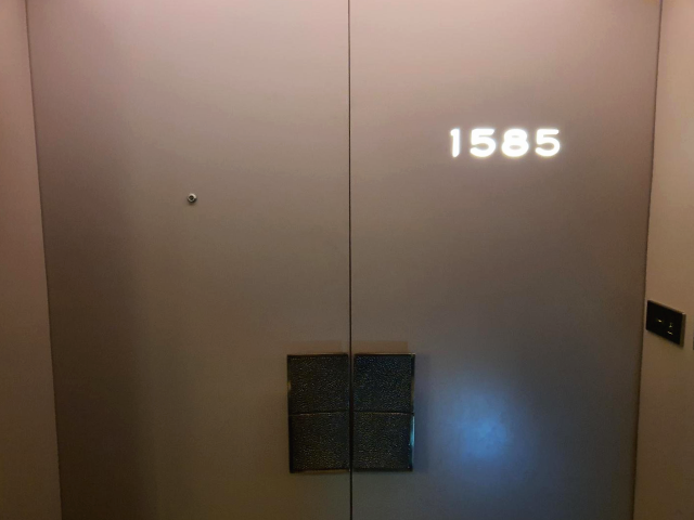 문을 열고 객실 키를 꽂으면 앞에 보이는 커튼이 자동으로 쭉 열립니다.