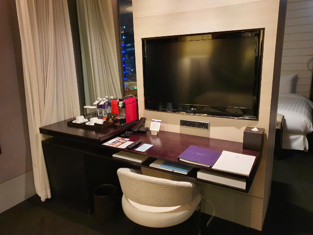 업무를 볼 수 있는 책상이 있고 티비가 있습니다. 여러나라 채널이 나오지만 한국채널은 많지 않은 게 조금 아쉬웠습니다.