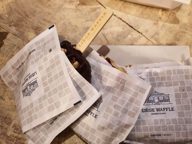더플라자호텔에서 일찍 일어나 조식을 먹고 밖에 나왔습니다. 리에제와플 가게 앞에는 아침 일찍부터 긴 줄이 생겨있었습니다. 테이크아웃인 포장전문매장인데도 오전에는 긴 줄로 오래 기다릴 것 같아서 뭘 먹을지 메뉴만 찍어놓고 나중에 오기로 했습니다.