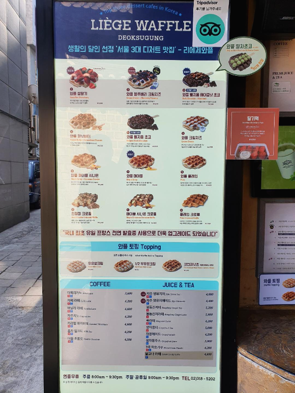 덕수궁 산책도 하고 덕수궁 안에 있는 현대미술관에서 관람도 하면서 시간을 보냈습니다. 와플가게 마감시간이 주말 공휴일이라서 밤 9시30분까지였습니다. 마감시간에 거의 맞춰서 9시 조금 넘은 시간이 왔더니 바로 주문할 수 있었습니다. 줄서지 않고 주문에 성공하였습니다.