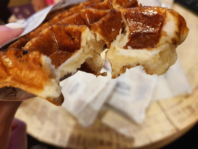 세 가지 와플 중 가장 먼저 토핑이 없는 메이플 시나몬부터 먹어보았습니다.