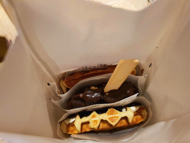 초코가 와플에 코팅이 너무나 잘 되어 있어서 초코 맛이 살아 있고 와플 속까지 초코가 들어있는 줄 알았습니다. 따로 떨어지지 않을 만큼 잘 부서지지 않는 초코와 와플 빵이 잘 붙어서 맛의 조화가 너무 좋았습니다. 진한고 꾸덕한 초코 와플이 가장 맛있었던 것 같습니다.