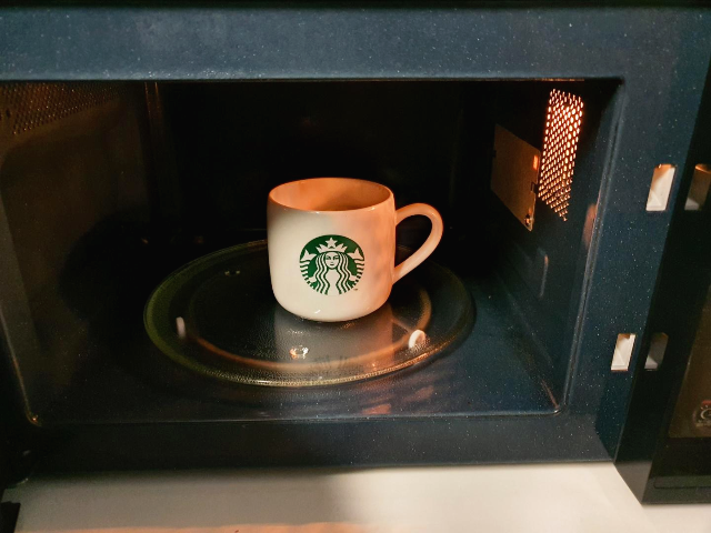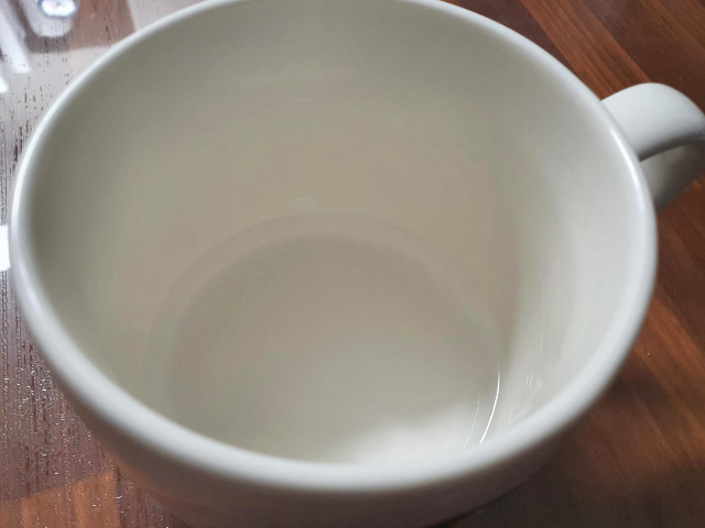 머그컵 바닥에 찰랑거릴정도로 적은 양의 물입니다.